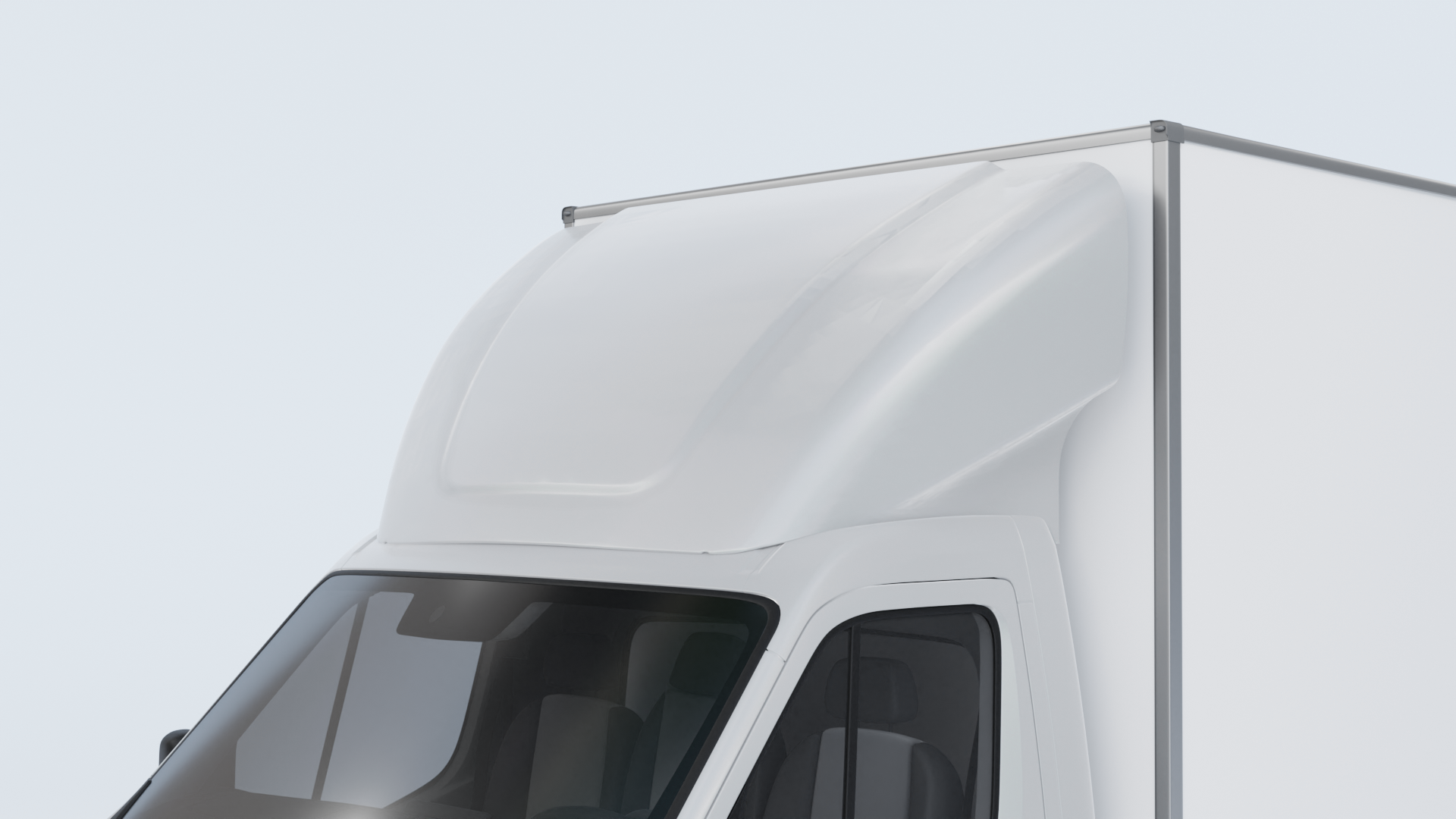Vaste 3D spoiler voor Renault Master. Zeer goed te combineren met zijfenders (28.31HZF). Ook goed te combineren met een interne opbergruimte:V-box Universeel | VEAP Shield United